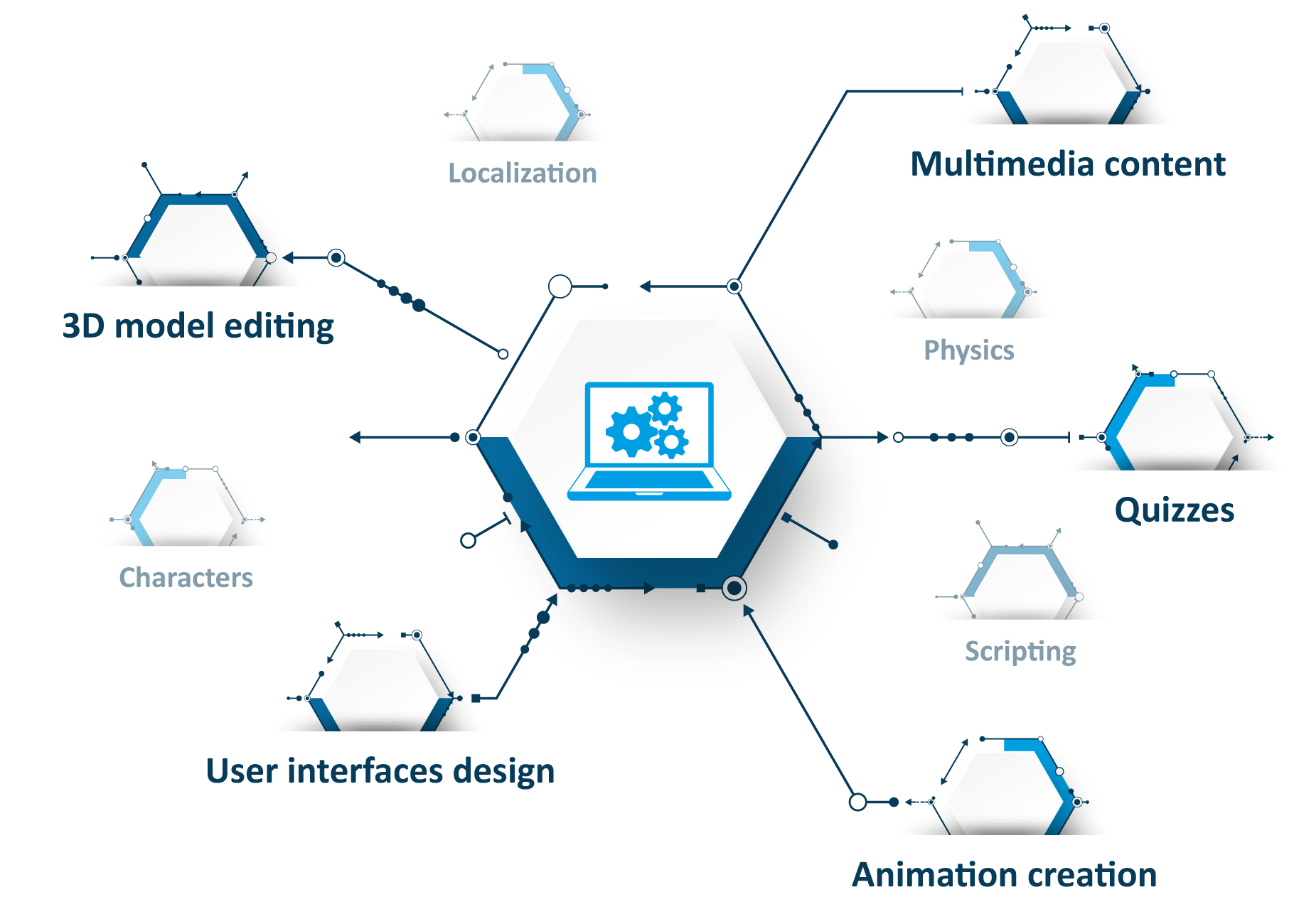 The software suite includes all the tools needed to develop and deploy highly engaging training simulators that accelerates the acquisition of technical skills and allows students to retain them over time.